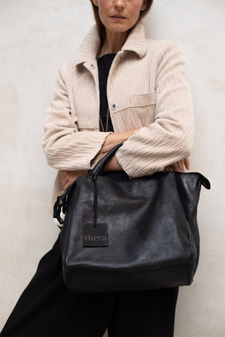 This black leather bag for women combines timeless elegance with functionality. Made of high-quality soft leather, it offers a flexible and spacious structure, perfect for everyday use. It features a double handle and an adjustable, removable strap for added versatility.