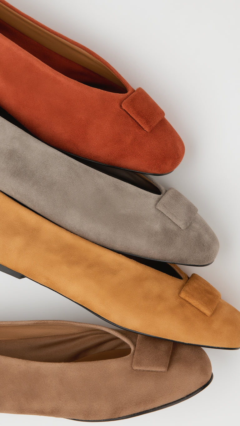The Elvire Medium Gray ballet flat offers a sophisticated and contemporary interpretation of the classic style. The medium gray suede adds depth without sacrificing neutrality, making it a refined and versatile choice. The slightly structured neckline visually elongates the instep, while the flexible construction and cushioned insole ensure all-day comfort. Medium gray works as a modern neutral that combines well with whites and off-whites as well as soft blacks or cool-toned outfits. A minimalist piece with an elegant and versatile character. We strive to display colors as accurately as possible, but they may vary slightly from reality.