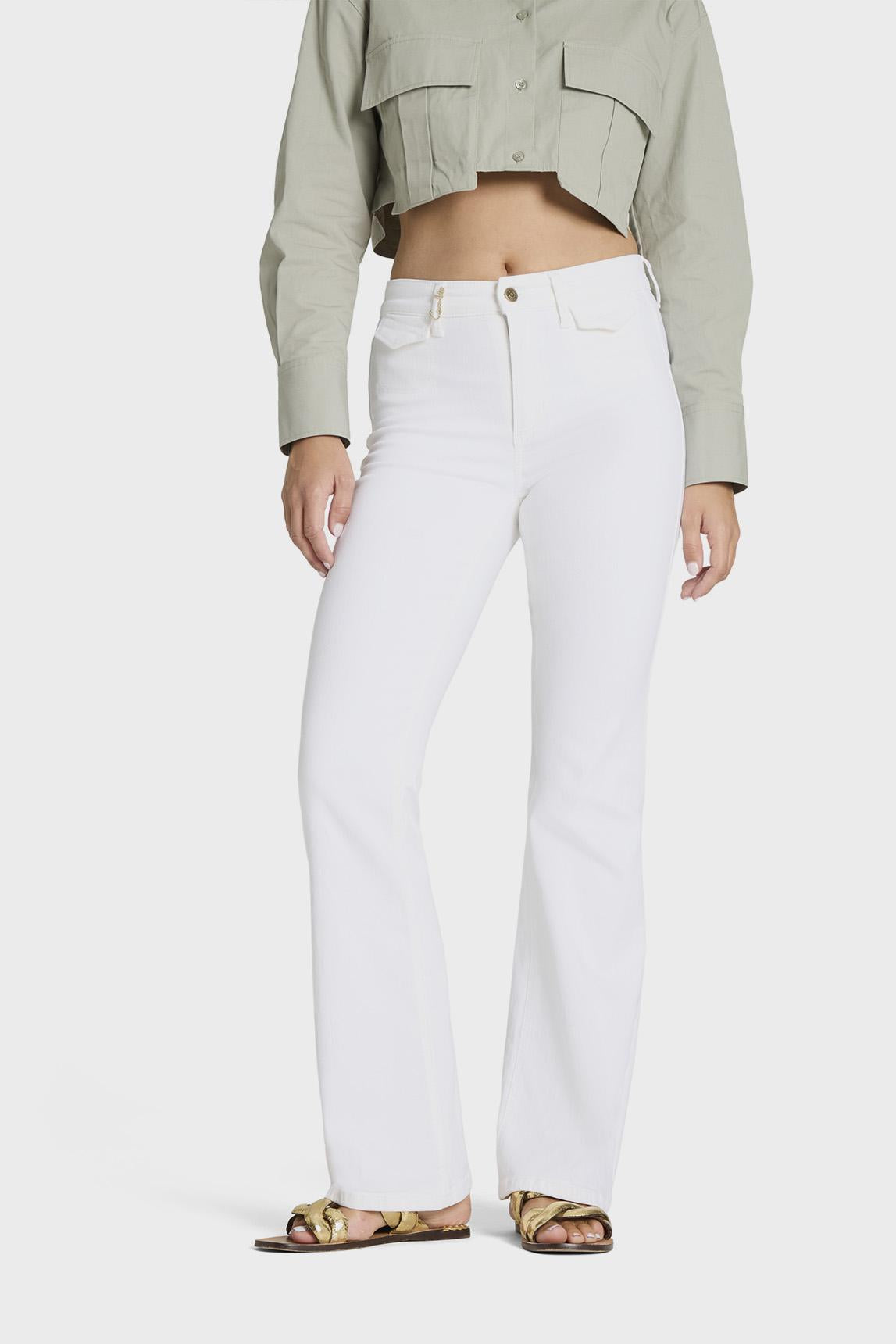 Made from a comfortable and elastic fabric, they offer freedom of movement and a pleasant fit throughout the day. Their design includes a front button closure, discreet front pockets, and back pockets that reinforce their polished aesthetic. The white color adds brightness and makes them a perfect piece to combine with blouses, shirts, or more relaxed garments, adapting to both urban and more refined looks.