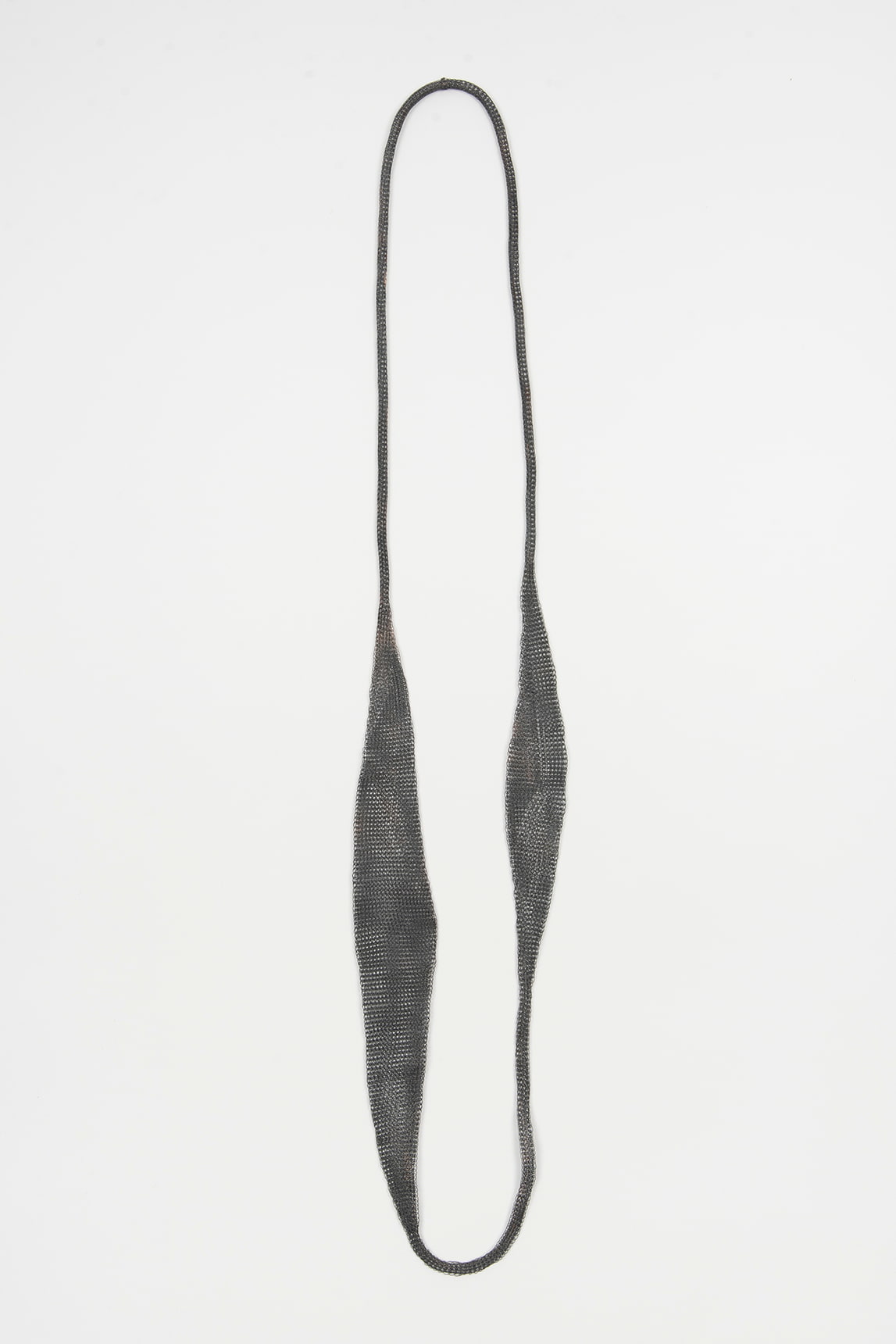- Collar largo confeccionado en malla metálica color antracita.