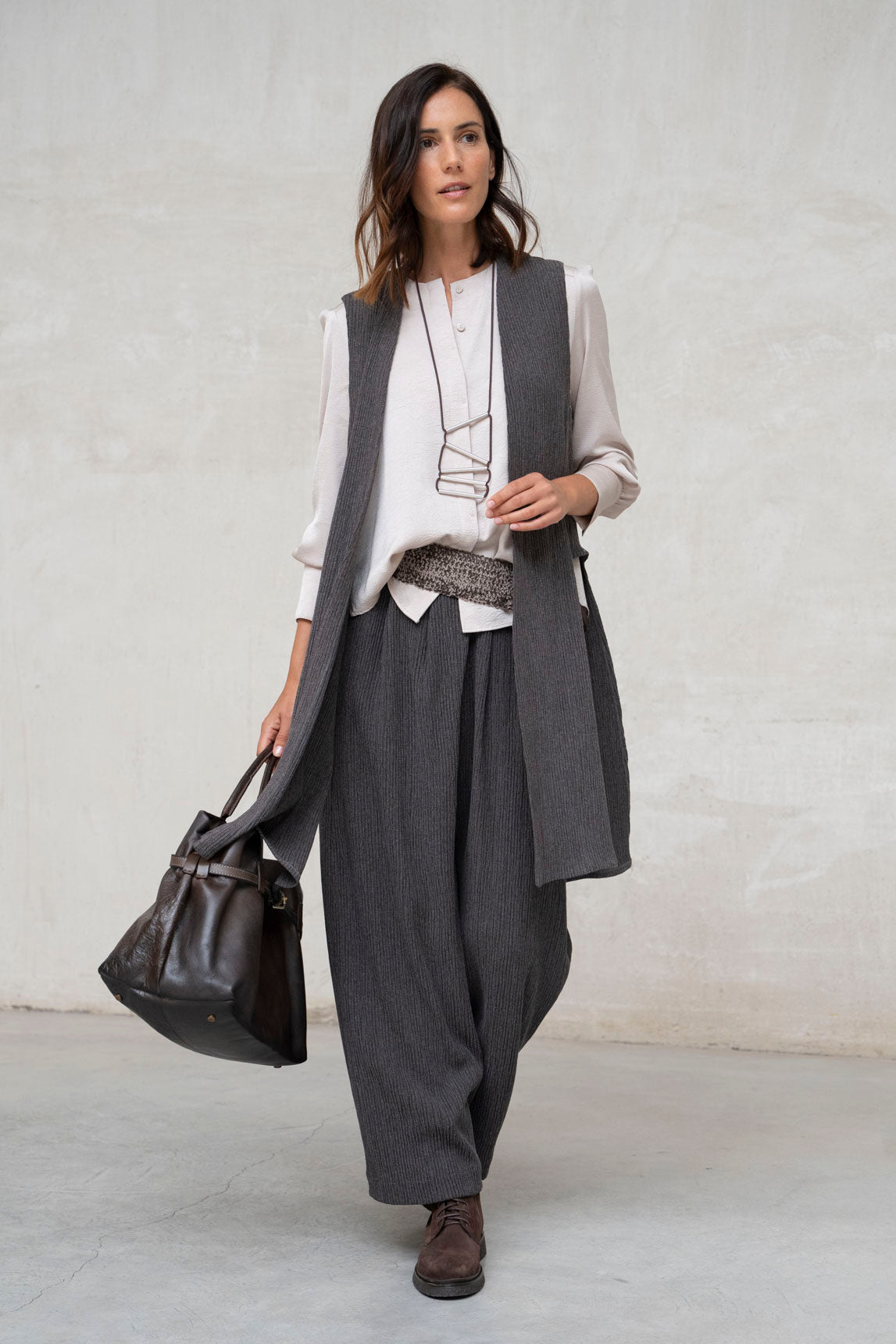 Este fajín de textura bouclé es una pieza clave para tus looks de otoño e invierno. Su mezcla de tonos marrón y topo aporta calidez, suavidad visual y un aire natural que combina con una gran variedad de prendas. El tejido mullido añade volumen sin sobrecargar, mientras que las cintas de grosgrain marrón, con terminales metálicos, permiten un ajuste cómodo y seguro. Ideal para elevar estilismos con jerséis, vestidos de punto o pantalones con un toque acogedor y sofisticado.