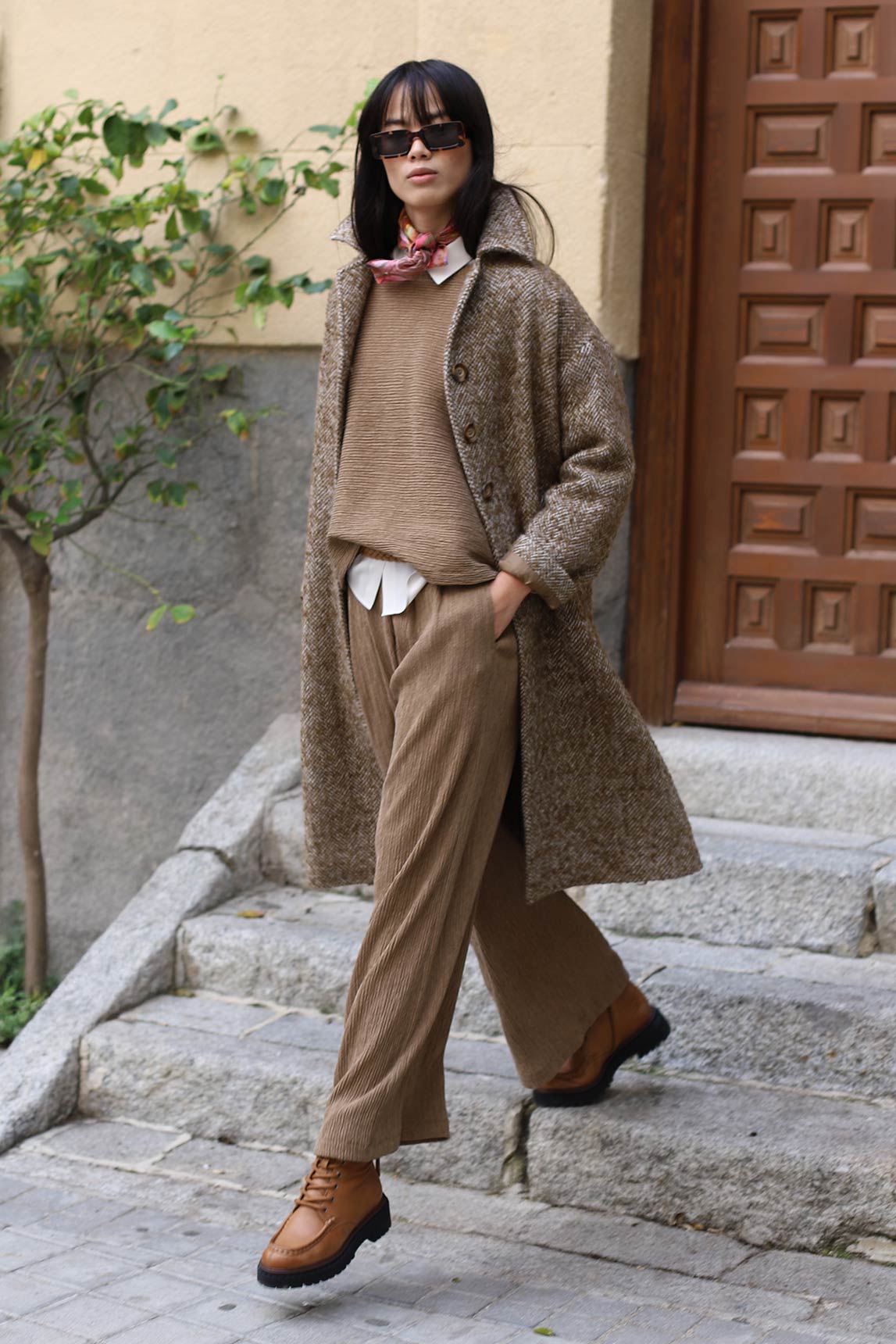 - Pantalón fluido en color camel.