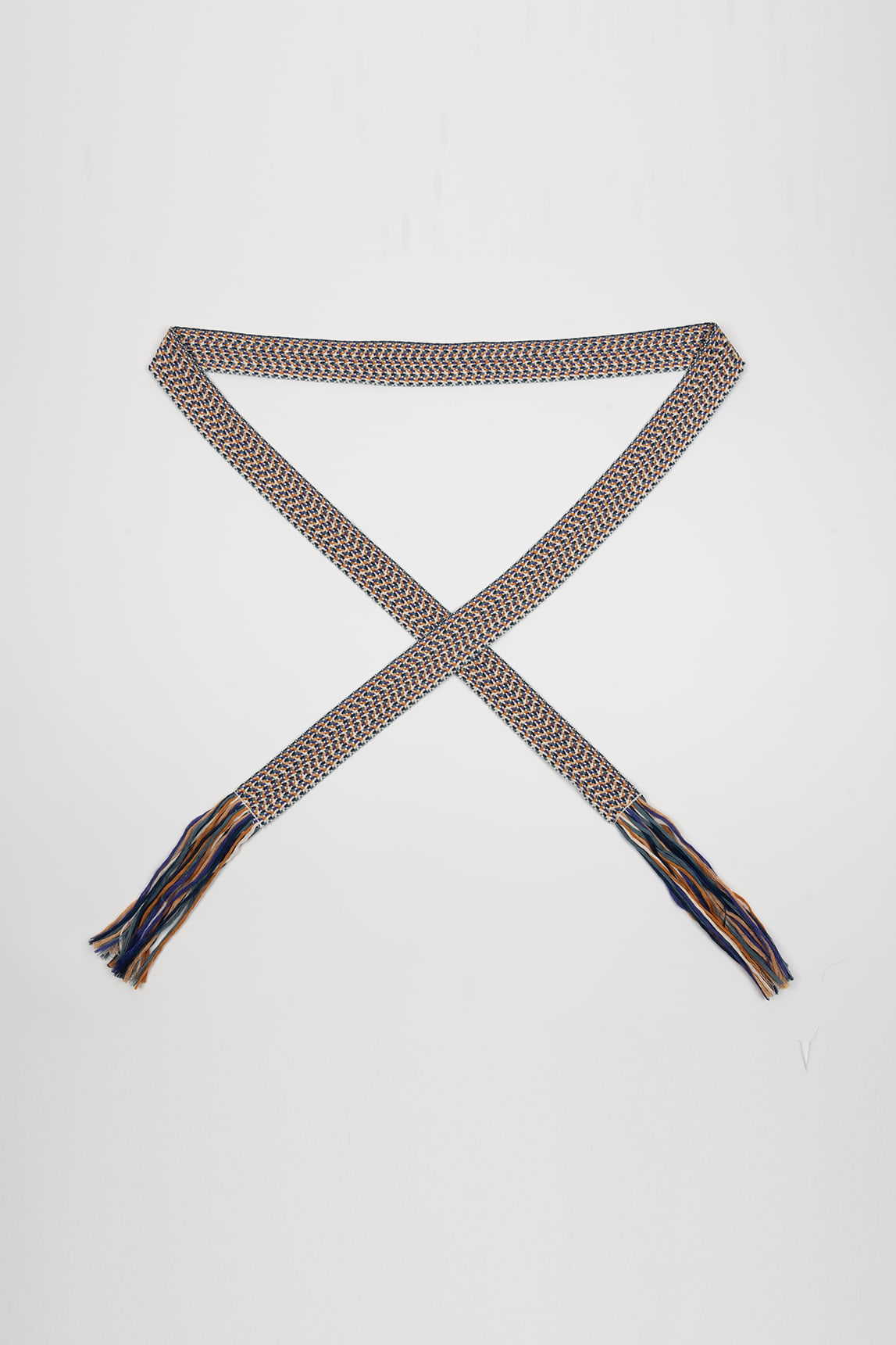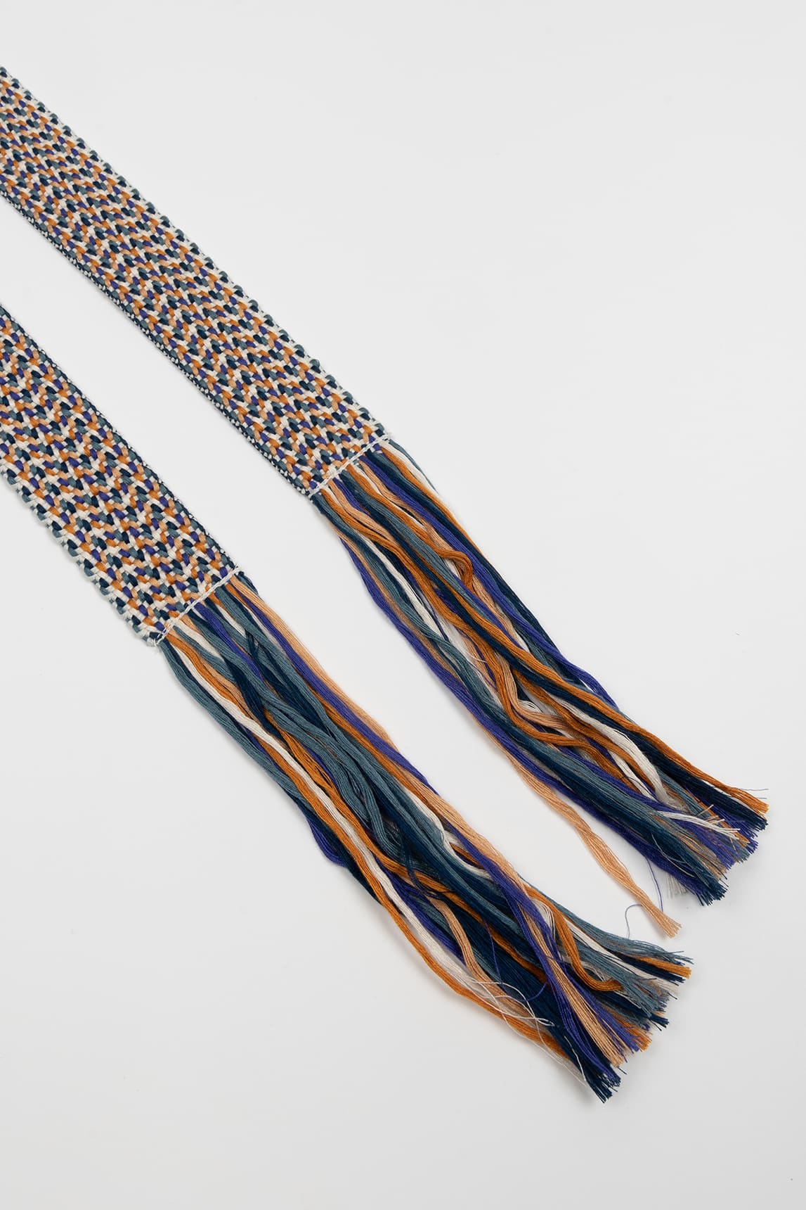 Haz una declaración de estilo con el cinturón Arendal de Rivera. Este accesorio de tela presenta un diseño étnico cautivador que agrega un toque distintivo a tus conjuntos. Con tonos azules, naranjas y blancos vibrantes, junto con elegantes flecos, este cinturón es el complemento perfecto para realzar tu outfit. Ya sea con vestidos elegantes o prendas casuales, el cinturón Arendal eleva tu look al siguiente nivel.