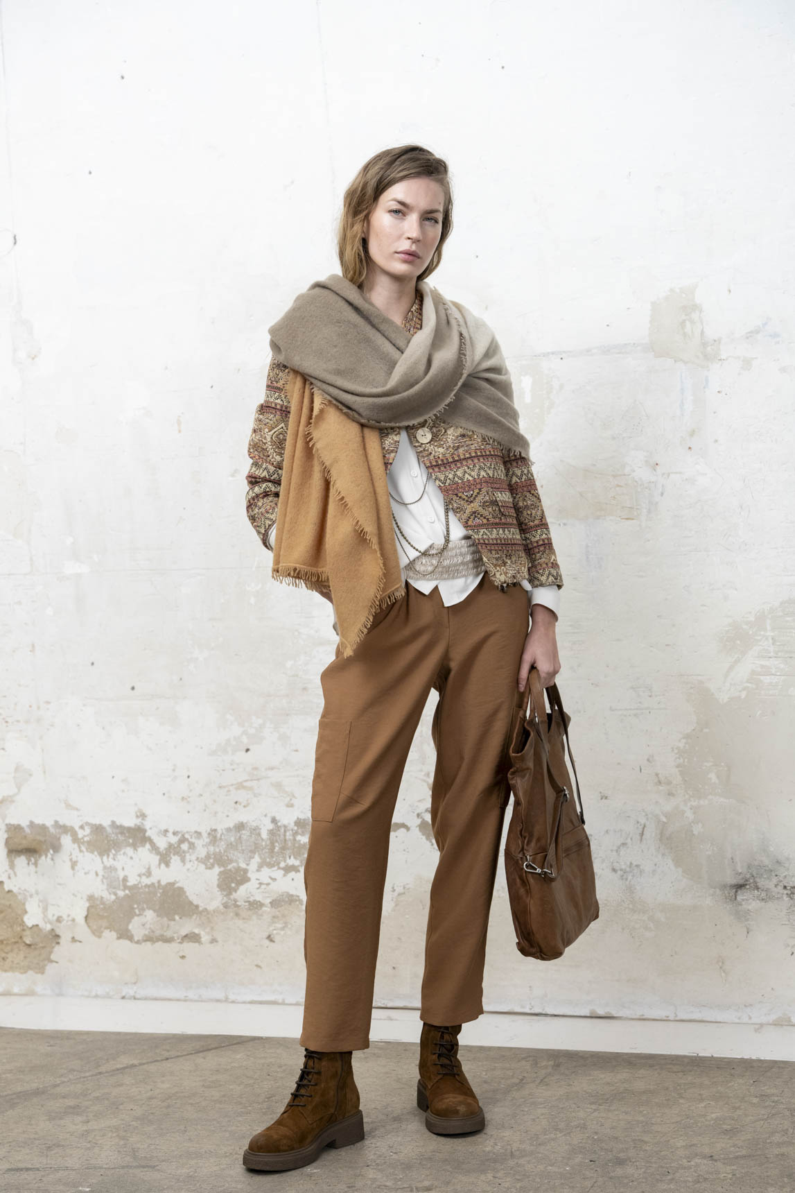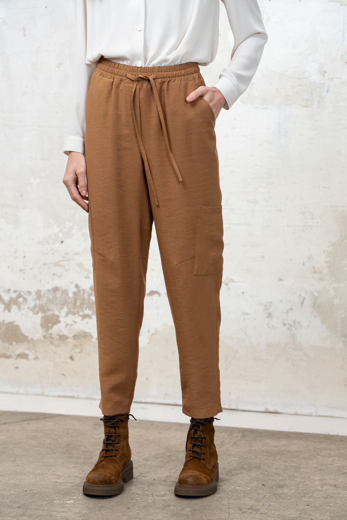 Descubre el pantalón Malu de Rivera, la pieza esencial para tus looks de otoño. Confeccionado en un sofisticado color camel, este pantalón ofrece un ajuste perfecto gracias a su cintura elástica y cinta regulable. Los bolsillos delanteros y laterales añaden practicidad, mientras que el fruncido delantero aporta un toque moderno y elegante. Ideal para combinar con tus prendas favoritas, el pantalón Malu es versátil y cómodo, perfecto para cualquier ocasión.