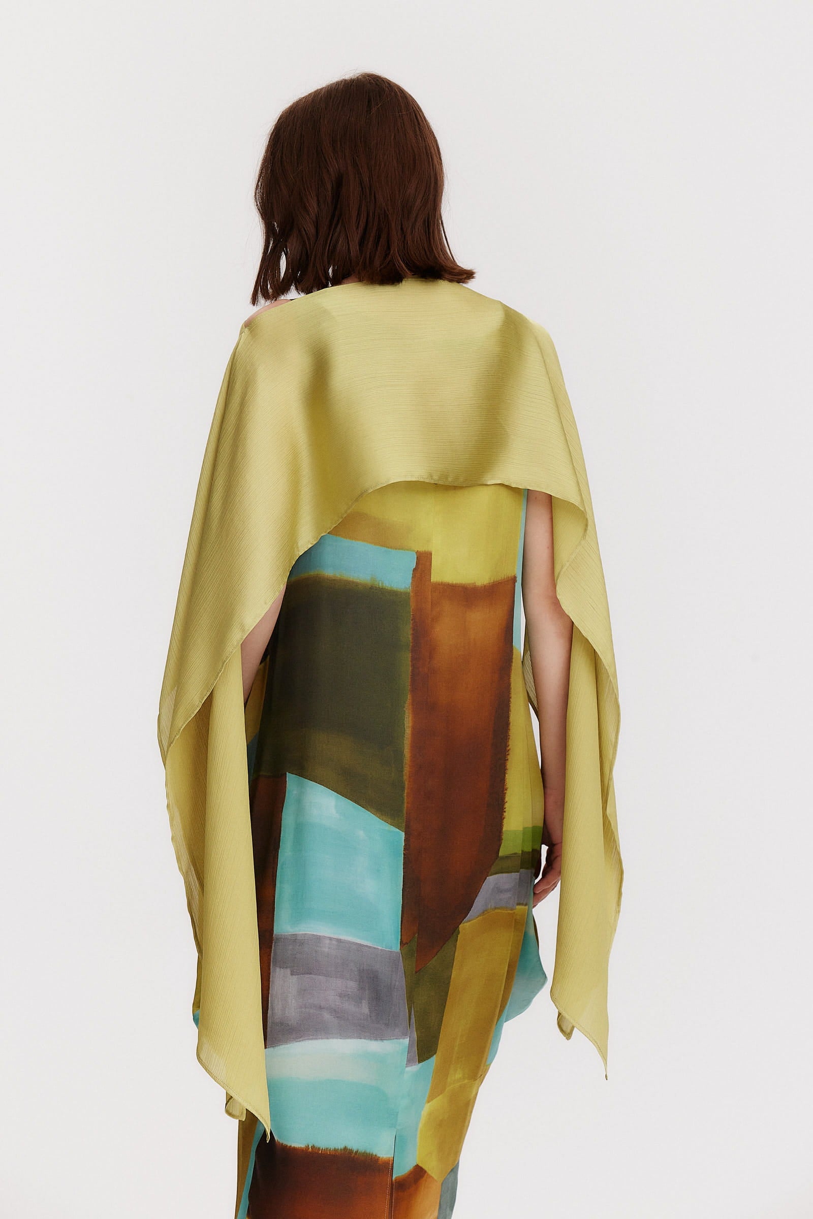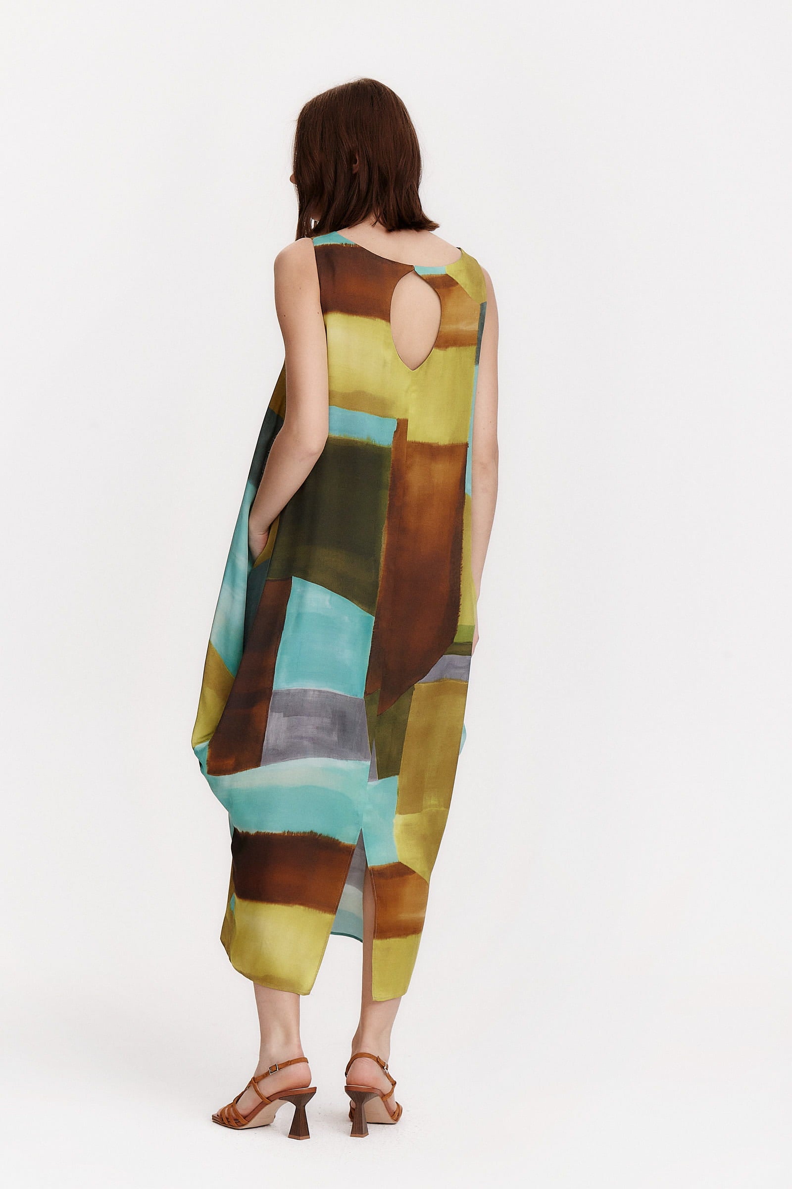 Descubre Alma, un vestido midi y suelto de estilo único y cómodo, perfecto para adaptarse a tu figura. Con una combinación de colores frescos, como el lima, el azul y el marrón, y un elegante estampado geométrico, este vestido es una verdadera joya.