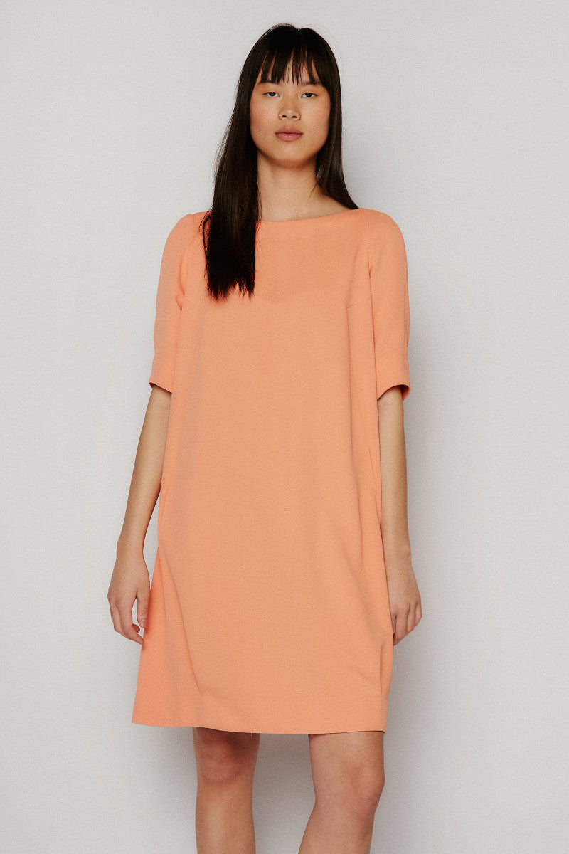 El vestido Azucena de Rivera con un diseño original y elegante, en color albaricoque. Cuenta con un escote redondo y una espalda favorecedora. Además, tiene prácticos bolsillos ocultos laterales. Un vestido perfecto para lucir con estilo y comodidad en cualquier ocasión.