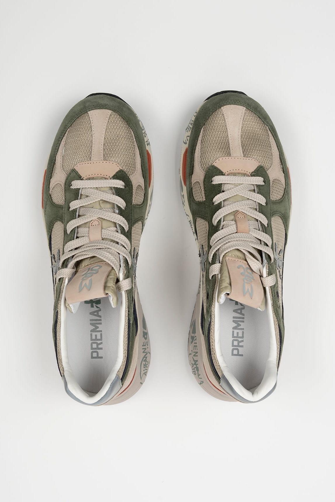 Las zapatillas Premiata Mase 8015 reinterpretan el estilo runner con una silueta más estructurada y contemporánea. Confeccionadas en una combinación de ante, piel y tejido técnico en tonos verde salvia, beige y detalles suaves en contraste, ofrecen un equilibrio perfecto entre diseño deportivo y sofisticación urbana.