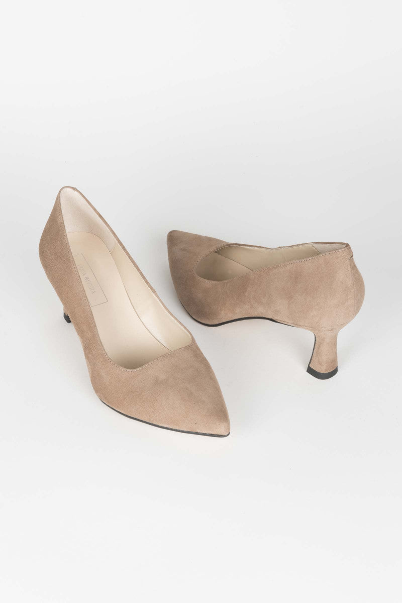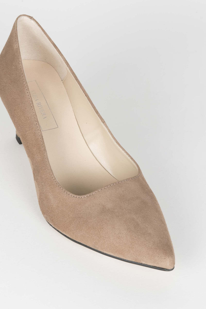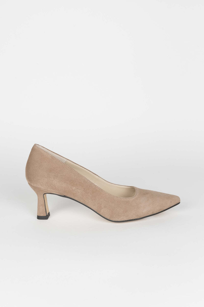 Da un toque de elegancia a tus looks con este zapato con tacón chupete. Un zapato cómodo que te estilizará, siendo su altura muy cómoda. Fabricado en ante topo terminado en punta y con suela de cuero.