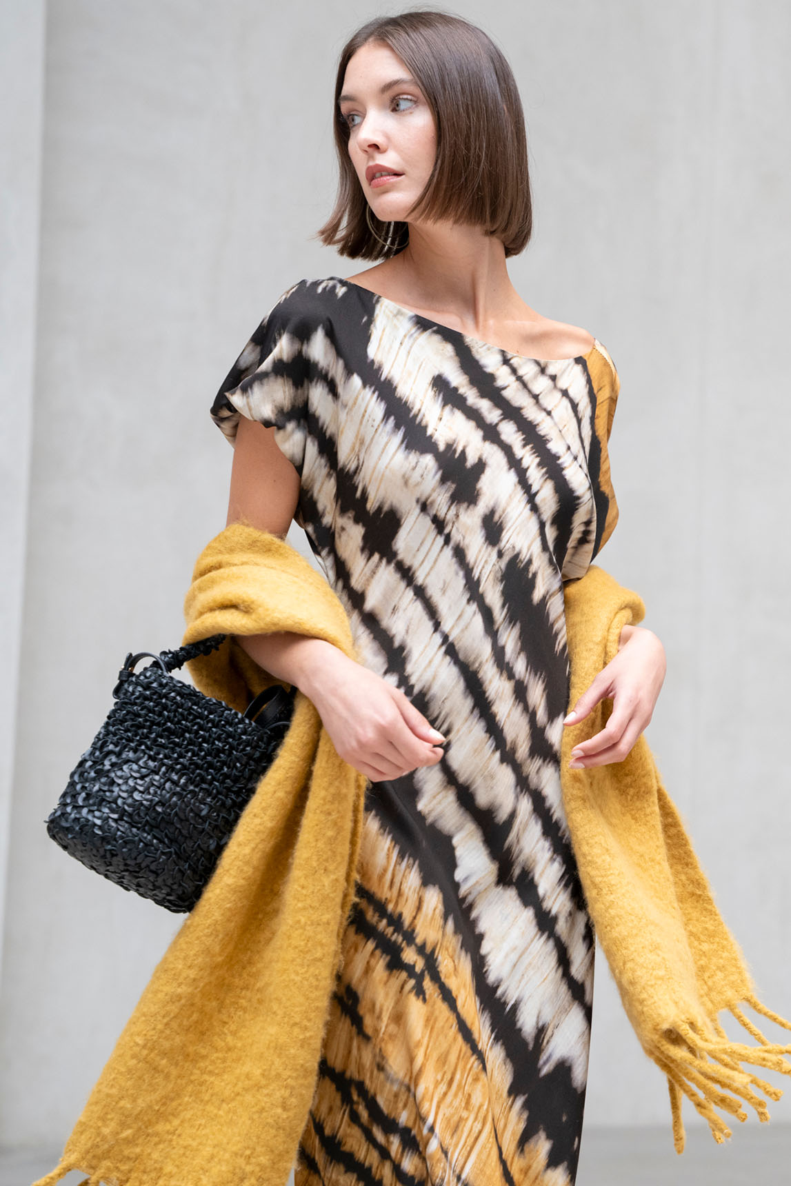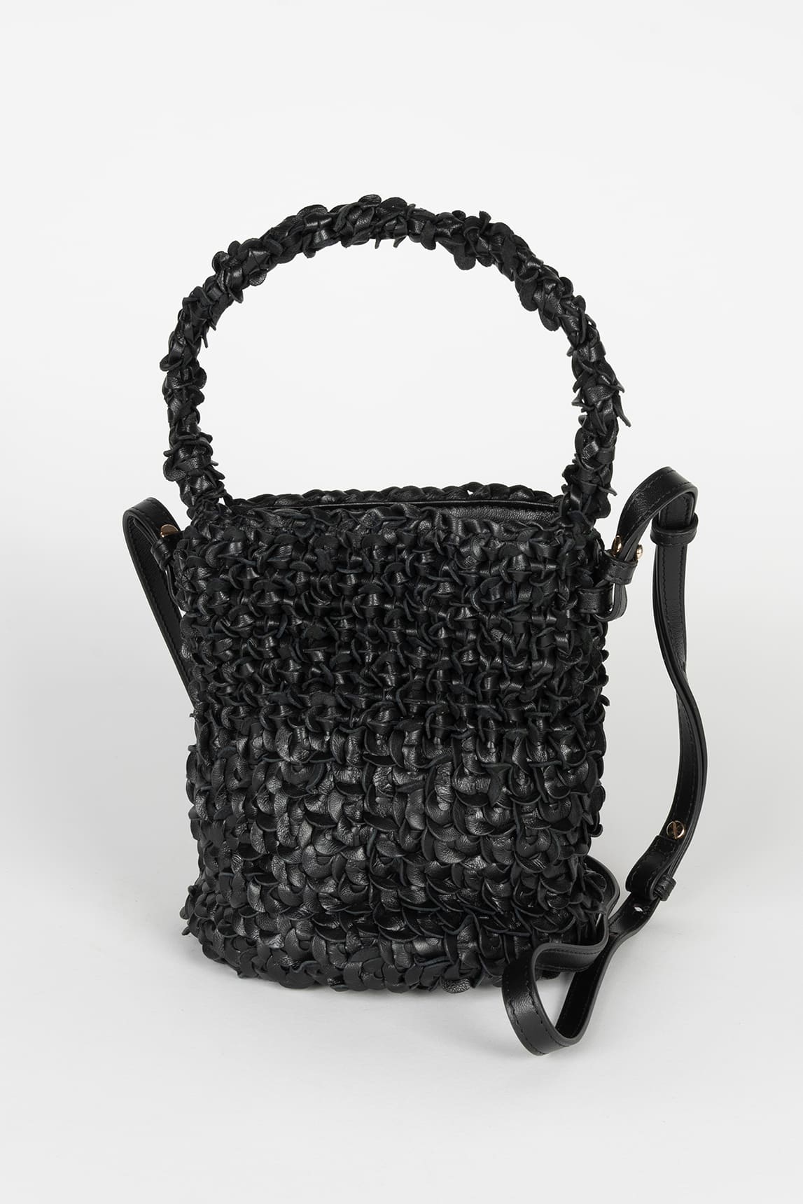 Bolso tipo bombonera confeccionado en piel trenzada artesanalmente, con un sofisticado acabado negro intenso que lo convierte en una pieza versátil y atemporal. Su diseño estructurado aporta presencia, mientras que la textura trenzada le da un toque contemporáneo con carácter propio.