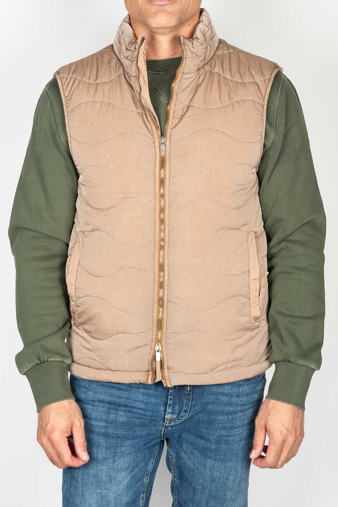 Este chaleco en beige arena suma calidez sin añadir volumen y eleva cualquier look casual con un toque deportivo y limpio. Ideal como capa intermedia en días frescos o bajo el abrigo cuando baja la temperatura.