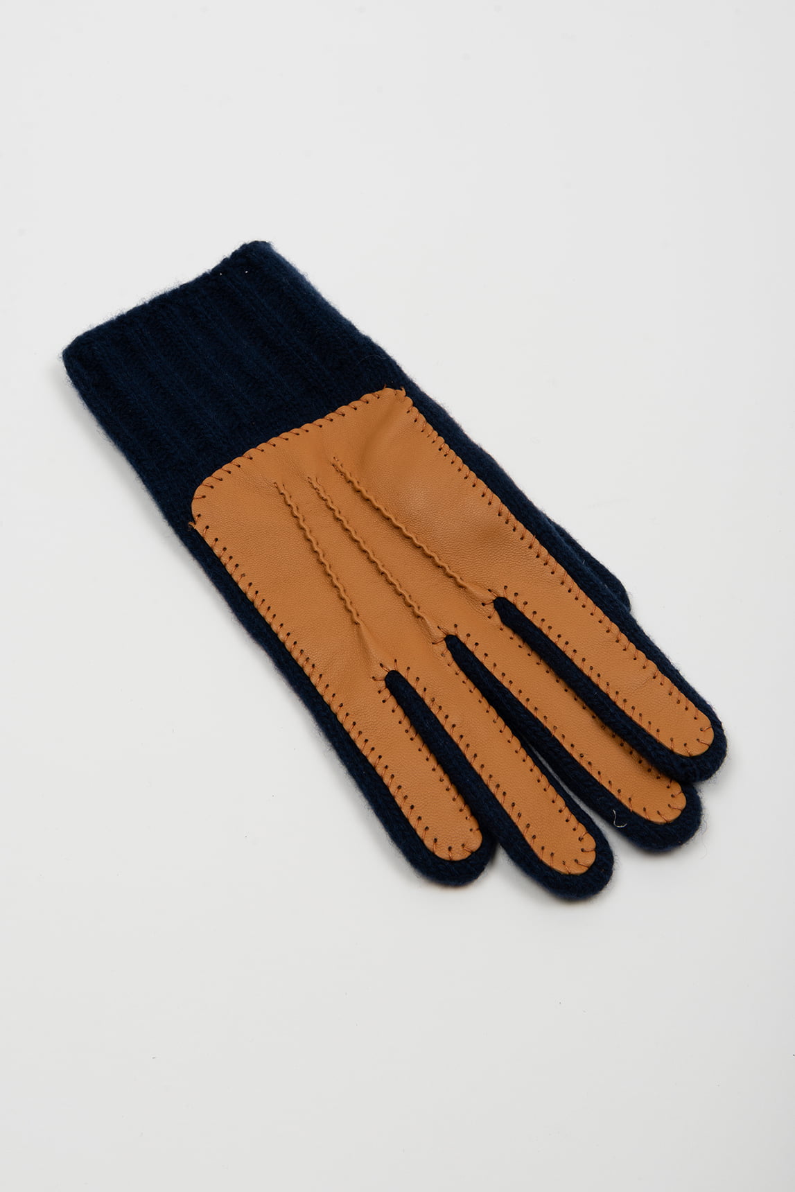 Guantes Millie de cashmere y piel en azul marino y camel