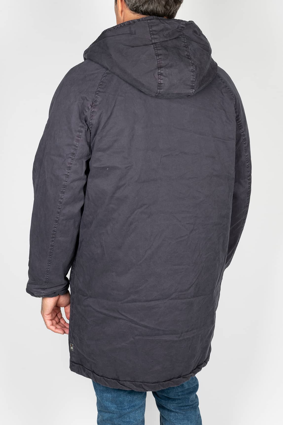 Una prenda de inspiración utilitaria, robusta y muy actual. El lavado del tejido le da carácter y facilita las combinaciones; la capucha y la doble botonadura suman protección. Funciona igual de bien con vaqueros y zapatillas que con chinos y jersey grueso.