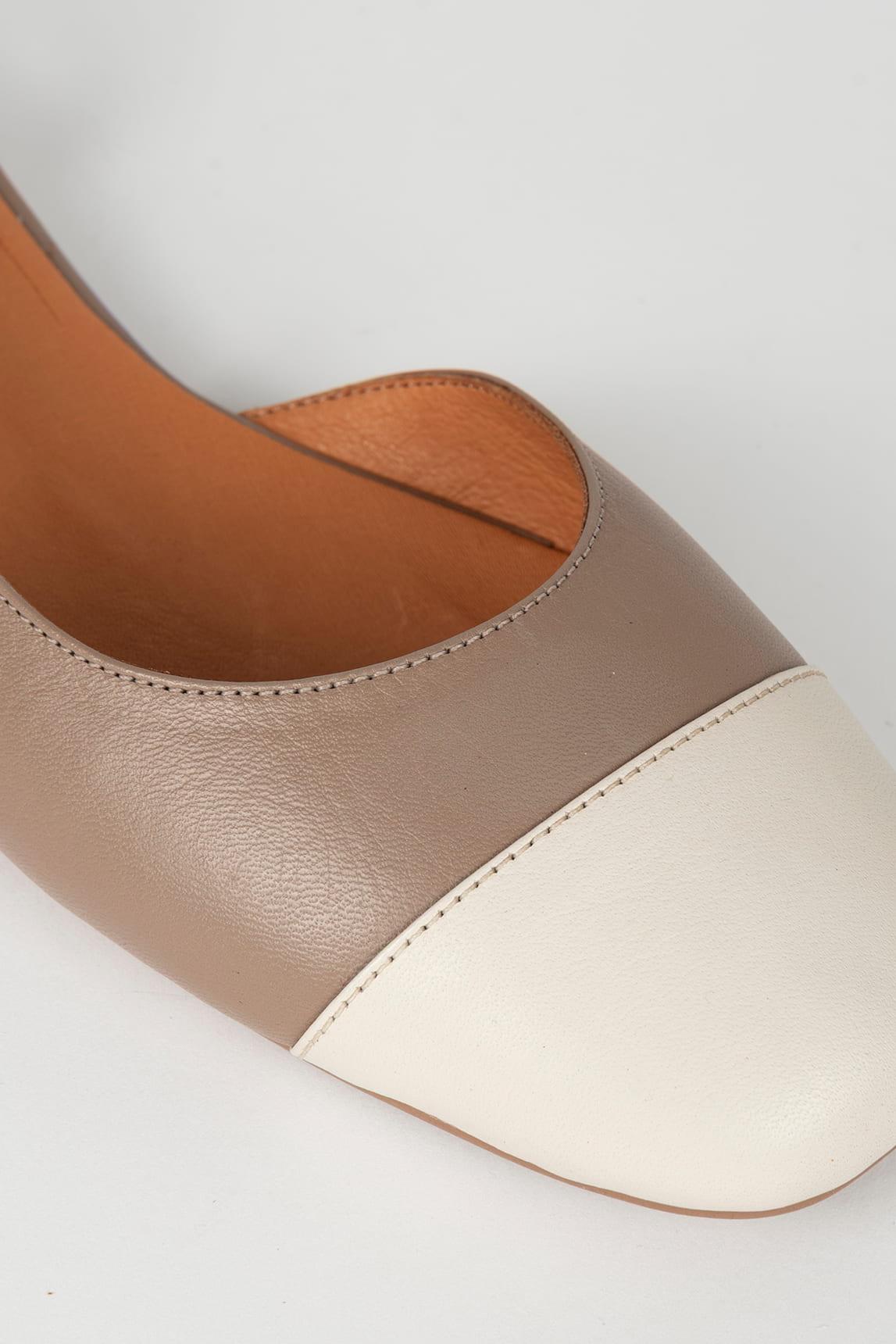 La sandalia Belara Crudo presenta una silueta depurada con pala cerrada y diseño bicolor equilibrado. La parte frontal cubre suavemente el empeine, mientras que la zona trasera queda abierta, aportando ligereza visual y frescura para los meses cálidos. La sujeción se realiza mediante una tira fina lateral que abrocha únicamente en el lado exterior, creando un efecto limpio y asimétrico que estiliza el conjunto. Este detalle aporta sofisticación discreta y evita sobrecargar la línea trasera del modelo. La plantilla acolchada y la suela flexible garantizan comodidad en el uso diario. El tono crudo luminoso, combinado con puntera en contraste suave, facilita su integración en estilismos en lino, beige, arena o tonos empolvados. Una sandalia plana elegante y ligera que equilibra estructura frontal y apertura posterior con naturalidad contemporánea. Nos esforzamos por mostrar los colores de la forma más fiel posible, pero pueden variar ligeramente respecto a la realidad.