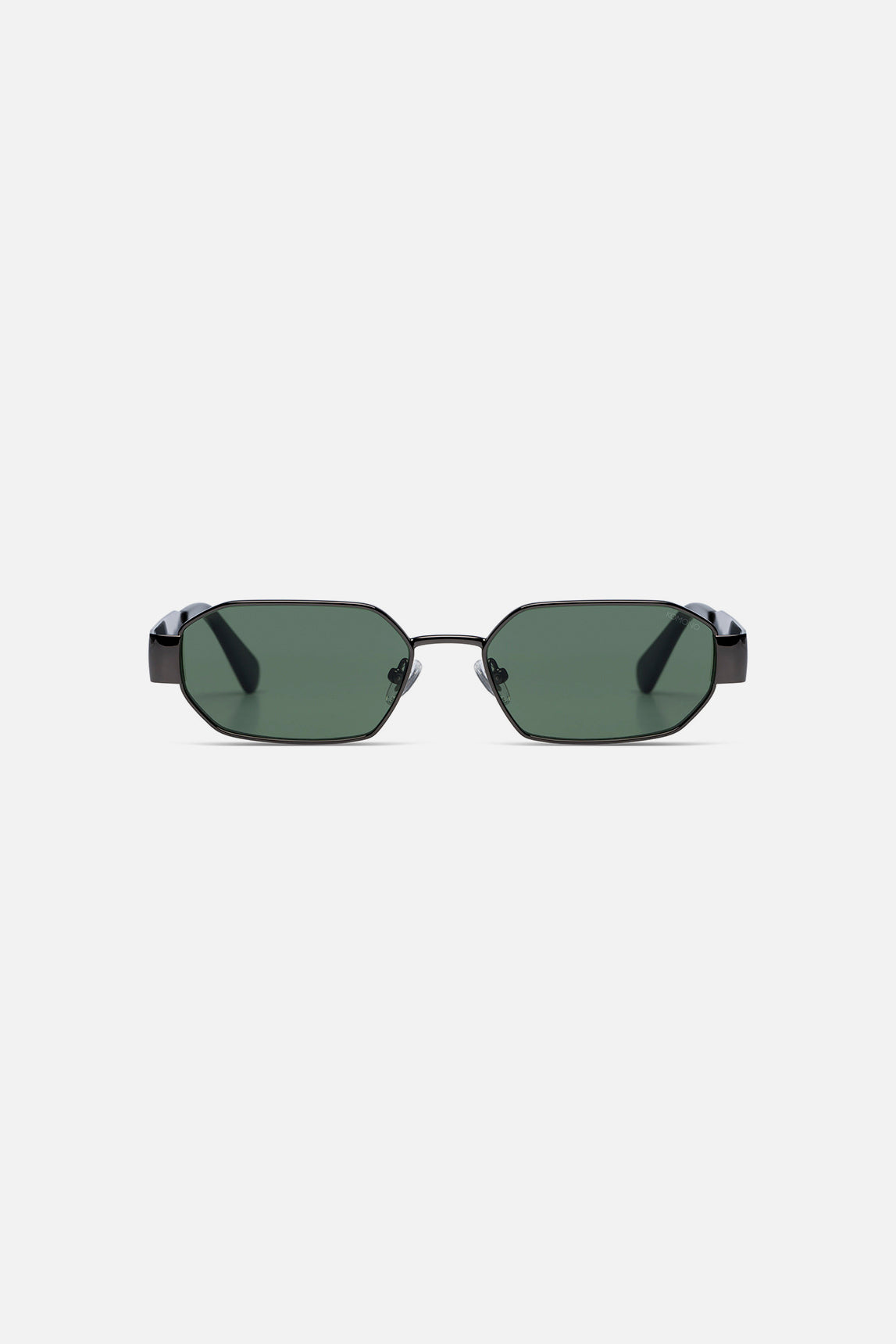 Os óculos de sol Komono Roux Gun combinam uma silhueta moderna e elegante com materiais de alta qualidade. A sua armação metálica confere um toque sofisticado e urbano, enquanto as lentes verdes oferecem uma proteção solar eficaz sem abdicar do estilo. Um modelo versátil, concebido para elevar qualquer look do dia a dia com um toque moderno e funcional.