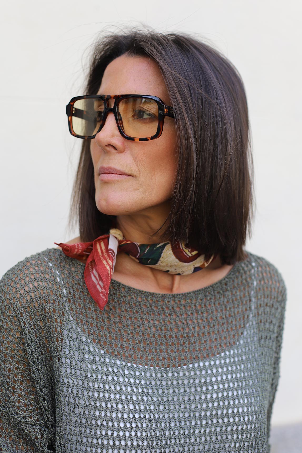 - Moldura em acetato cor Havana com acabamento brilhante.