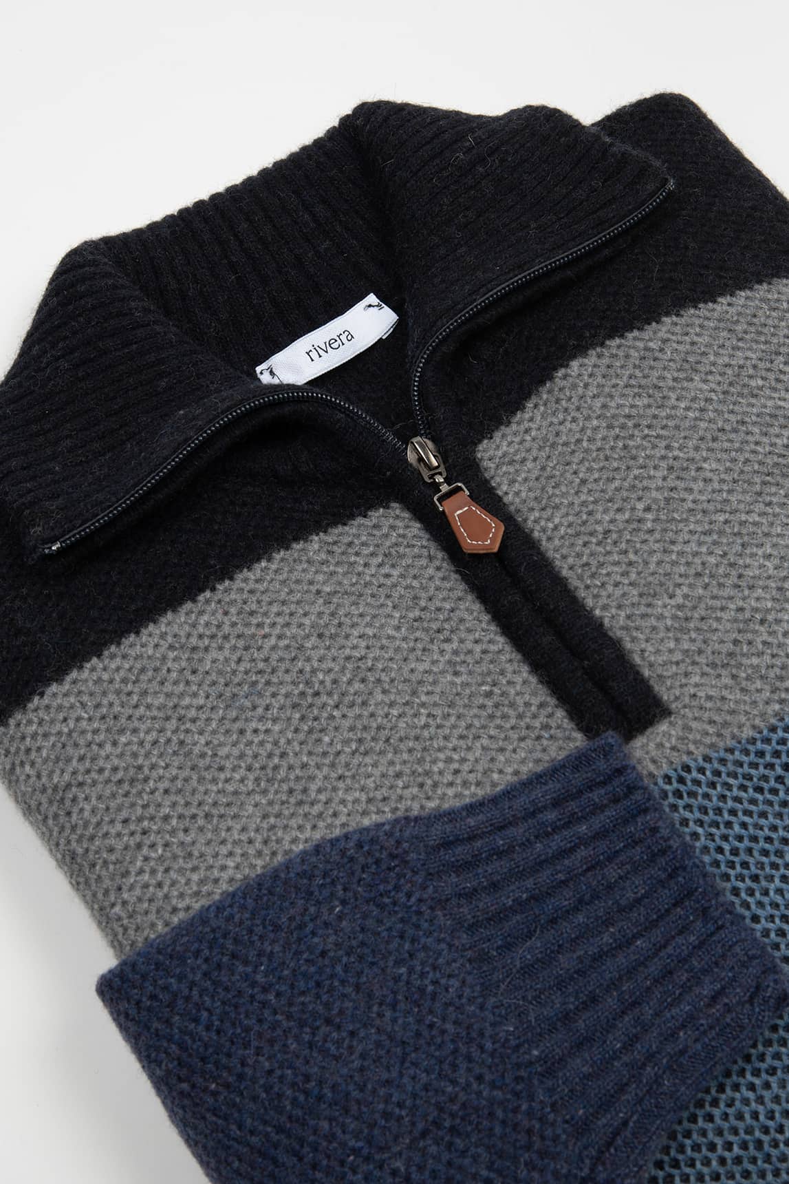 El jersey Fervio de Rivera combina confort y diseño en una prenda esencial para el invierno. Su mezcla de tonos neutros y fríos lo convierte en una opción versátil, perfecta para combinar con jeans o chinos. El cuello alto con cremallera permite ajustar el nivel de abrigo, aportando un toque moderno sin renunciar a la elegancia clásica.