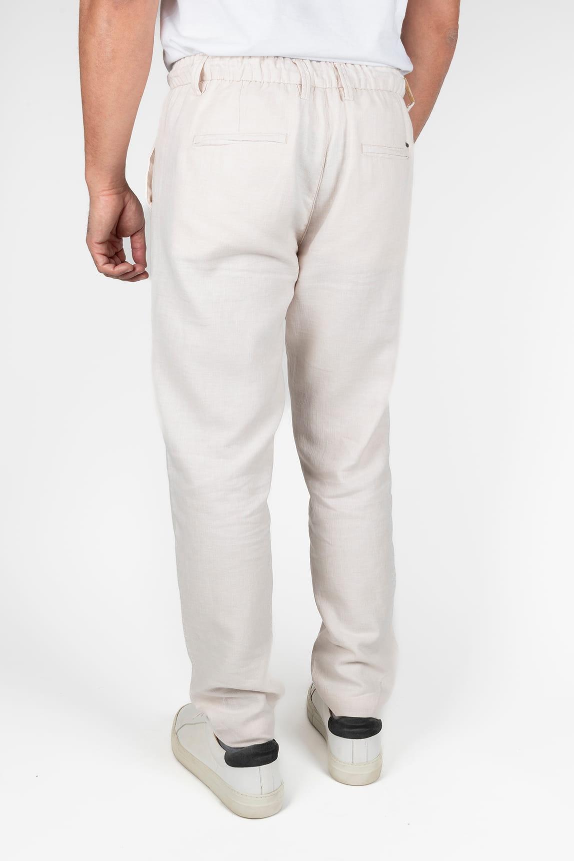 Its cut offers a comfortable fit at the waist and a straight line that flatters without being tight, balancing structure and fluidity. The off-white, luminous and versatile, enhances the fabric's texture and facilitates combinations with both soft tones and more defined contrasts, adapting to current styles with a natural and refined air.