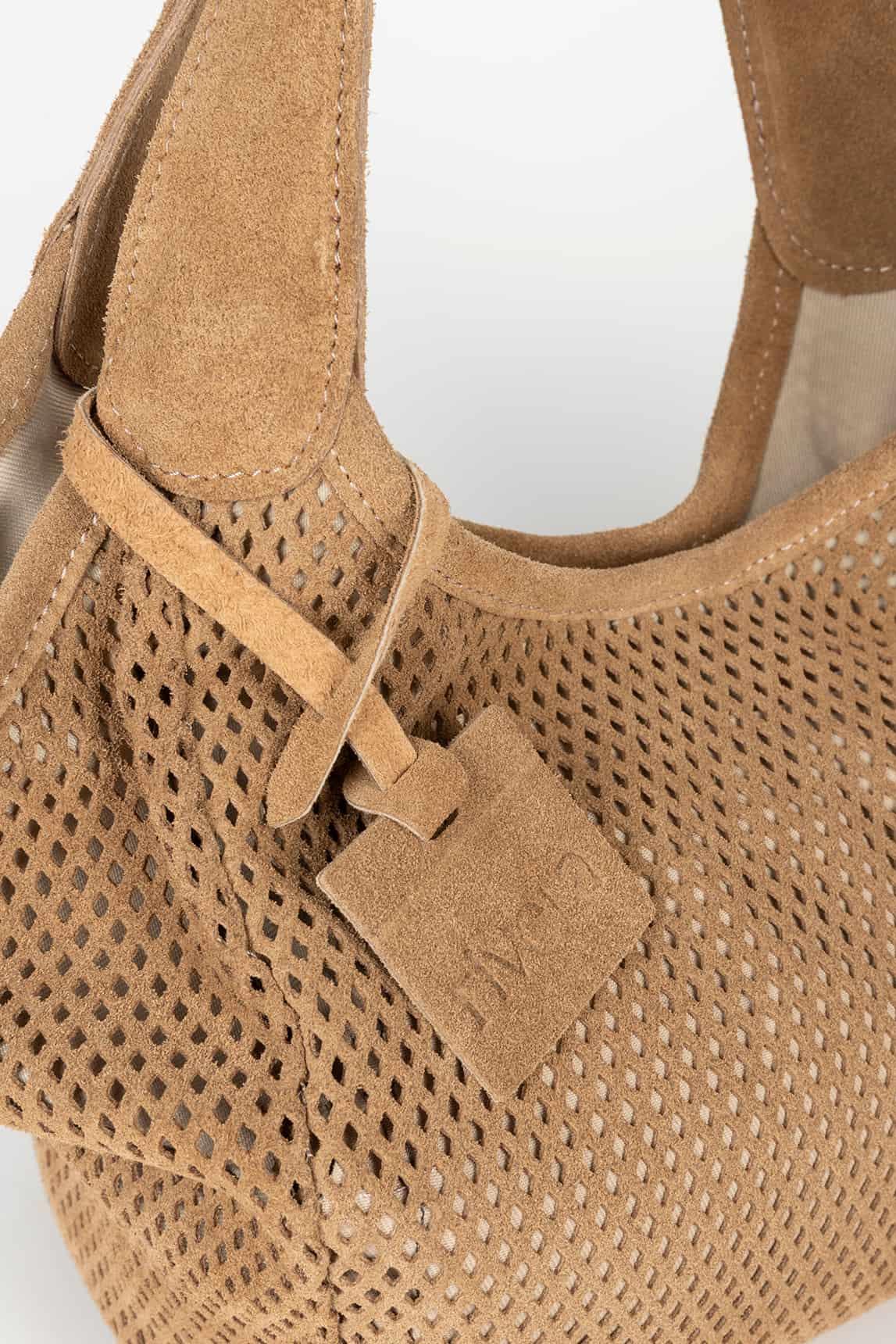 Este bolso de silueta estructurada y líneas suaves destaca por su diseño troquelado integral que aporta ligereza visual y textura contemporánea. Presenta doble asa corta firme que permite llevarlo cómodamente en mano o al hombro, manteniendo una forma equilibrada. El cuerpo ligeramente trapezoidal le da estabilidad y presencia sin resultar voluminoso. Con medidas de 37 x 36 x 13 cm y asa de 20 x 10 cm, se adapta con facilidad al ritmo diario. En clave de estilo, el tono arena aporta calidez natural y luminosidad. Es una tonalidad neutra que combina con blancos, crudos, denim o gamas tierra, encajando especialmente bien en estilismos de primavera y verano. El acabado perforado refuerza su aire ligero y fresco, aportando un carácter relajado y actual. Diseñado para quienes buscan un accesorio funcional con personalidad sutil, este bolso equilibra estructura y frescura en una pieza versátil y atemporal. Nos esforzamos por mostrar los colores de la forma más fiel posible, pero pueden variar ligeramente respecto a la realidad.