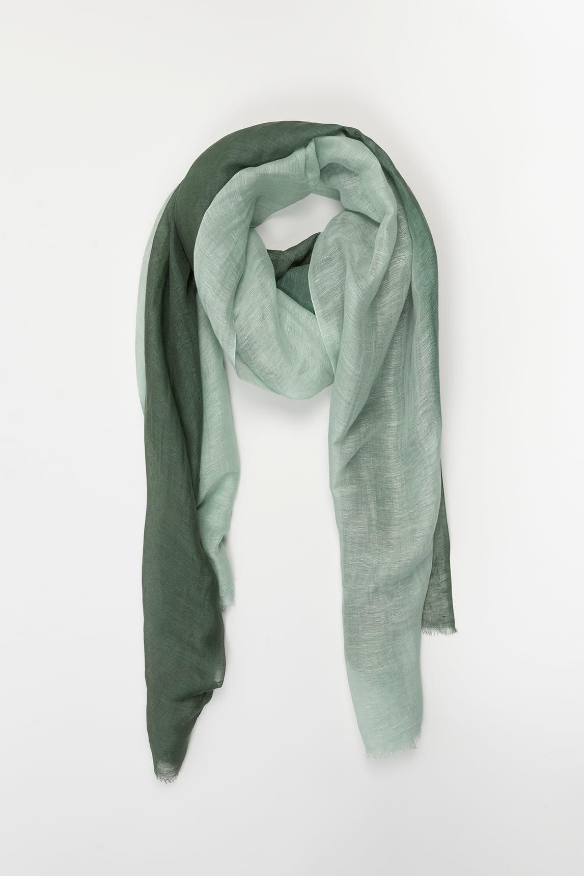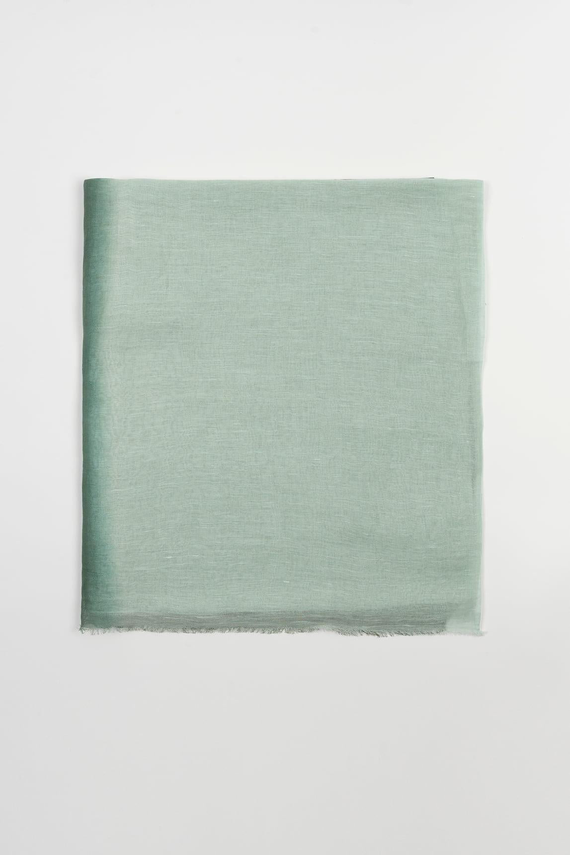Lenço leve confecionado em 70% linho e 30% algodão, com textura natural e caimento fluído. Apresenta um suave degradé que transita do verde menta para um verde mais escuro, criando um efeito fresco e elegante. Detalhes delicados com um subtil efeito desfiado realçam o seu toque artesanal. Com o seu estilo limpo e contemporâneo, é ideal para a meia-estação e para o verão: usado sobre os ombros como um xaile leve, atado à volta do pescoço para dar um toque de cor ou combinado com tons neutros para deixar o degradé brilhar. Exala calma, luminosidade e um toque sofisticado sem esforço. Esforçamo-nos por exibir as cores da forma mais precisa possível, mas podem variar ligeiramente da realidade.